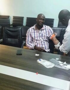 Dans une belle démonstration de solidarité, les professionnels de santé ont donné l’exemple. Le premier à offrir son sang avec fierté fut l’Inspecteur Régional de la Santé, Dr Kassié FANGAMOU, lançant ainsi une chaîne de vie et d’espoir.