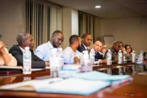 Cette rencontre, placée sous la présidence conjointe du Ministre de la Santé et de l’Hygiène Publique, Dr Oumar Diouhé Bah, et du Ministre, Secrétaire Général du Gouvernement, M. Tamba Benois Kamano, a rassemblé les acteurs clés du projet. Étaient présents les représentants des ministères concernés (Santé, Économie), de l’ACGP, du BSPP, ainsi que les partenaires techniques et financiers, les entreprises contractantes et l’Ambassadeur de France en Guinée.
