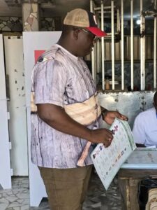 Le conseiller communal de Dixinn, l’honorable Jules Doré, s’est acquitté de son devoir civique ce dimanche 28 décembre 2025 en prenant part au scrutin présidentiel. Il a voté au bureau de Dixinn Centre 1, situé au niveau du bar-café, en compagnie de l’honorable Sékou Doré, conseiller national au Conseil National de la Transition (CNT).