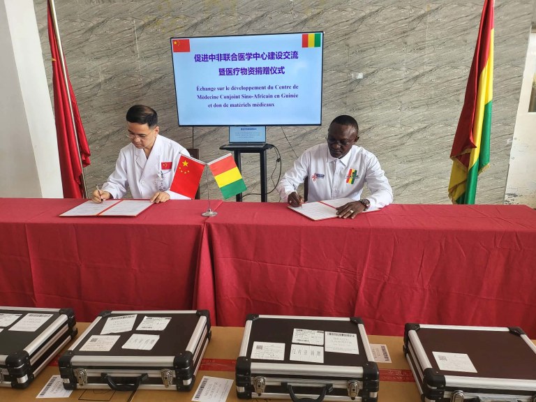 La cérémonie s’est clôturée par la signature d’un accord conjoint entre le Dr Mohamed Diané et Wang Bin, symbolisant une nouvelle étape dans le partenariat médical entre la Guinée et la Chine.